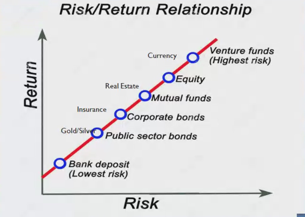 Equity: It is share market investment. We do it ourselves. It is share/stock investment. It gives dividend. It depends on the market if the money will be attained or not. It has higher risk but it has higher returns.