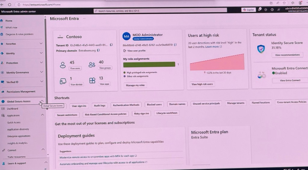 - Contoso MA MOD Administrator: The user’s role and organisation.