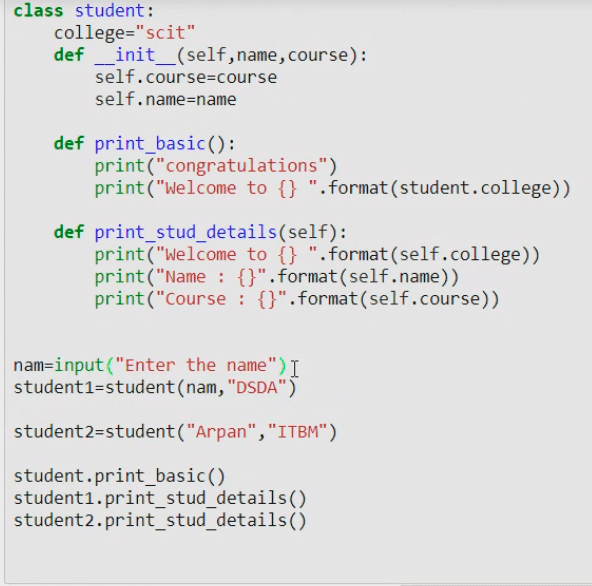 print(« department »+self.e_dept)