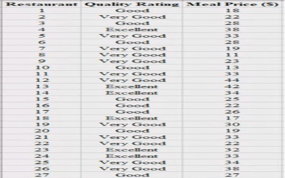 • A better way to create this table would be to use ranges of values, rather than individual data points.