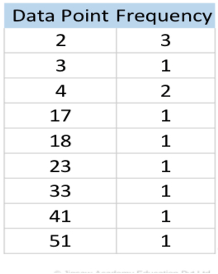2, 2, 2, 3, 4, 4, 17, 18, 23, 33, 41, 51 : Ascending order of the series.