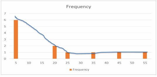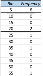 Bin refers to the value range, so 5 refers to “0 – 5”