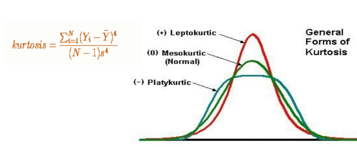 - Kurtosis: Sharpness of the peak of the distribution. Co-efficient of Kurtosis is an index/value of peakeeness/tallness of the data.