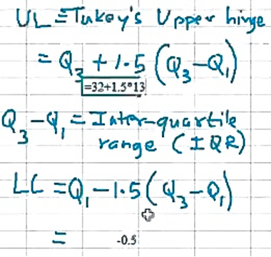 | Median/Quartile 2 (Q2) | =MEDIAN(c 2 :c301) | Put all in ascending order and find the middle value | Omit largest and smallest value : QUARTILE.EXC |