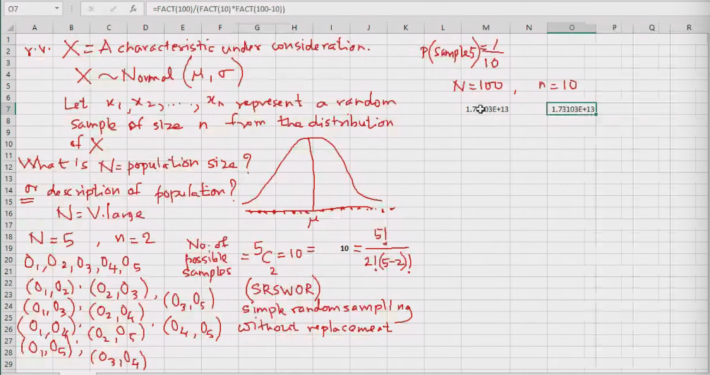 When the population sample is 100 and sample is 10 there are alot of random samples.