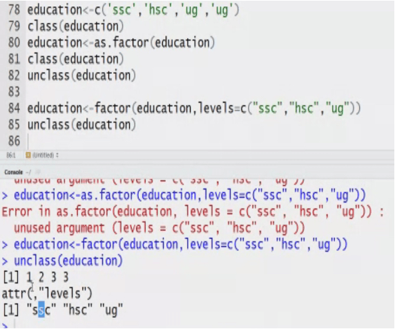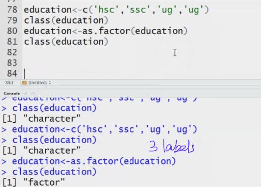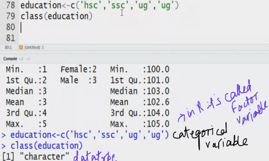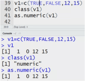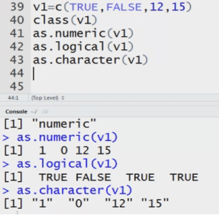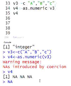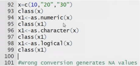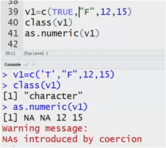 my data<-c(2,3,’a’,’b’) System converts the Datatype to numeric to character.