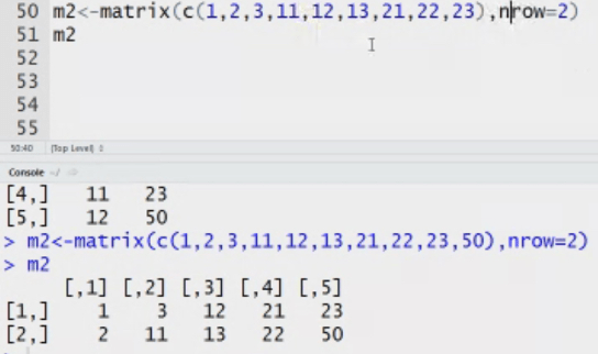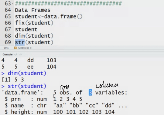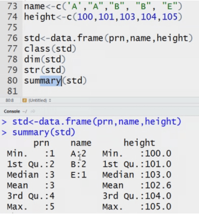 Data frame: how is it different from matrix. It stores data in tabular. It can have different data types.