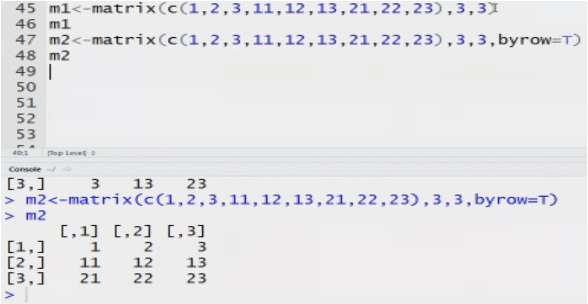 Matrix: n dimensional matrix. The elements of same type. Length of each column is same. It stores value in tabular form.