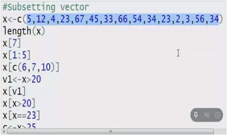V1<-(23,45,67.78,65.56,34.56)