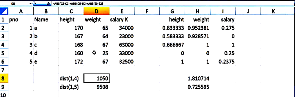- Decimal scaling= x/10^3 number of digits of maximum values